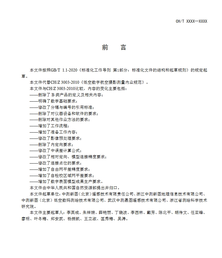 本文件在测绘行业技术性指导文件CH/Z3003-2010《低空数字航空摄影测量内业规范》的基础上,根据当前的技术水平,对低空数字航空摄影测量中的关键环节--数据预处理、空中三角测量和基础地理信息成果生产等环节进行了技术约定和作业过程指导。