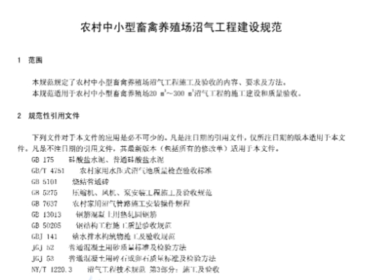 本规范规定了农村中小型畜禽养殖场沼气工程施工及验收的内容、要求及方法。