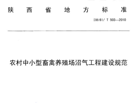 DB61/T503-2010农村中小型畜禽养殖场沼气工程建设规范