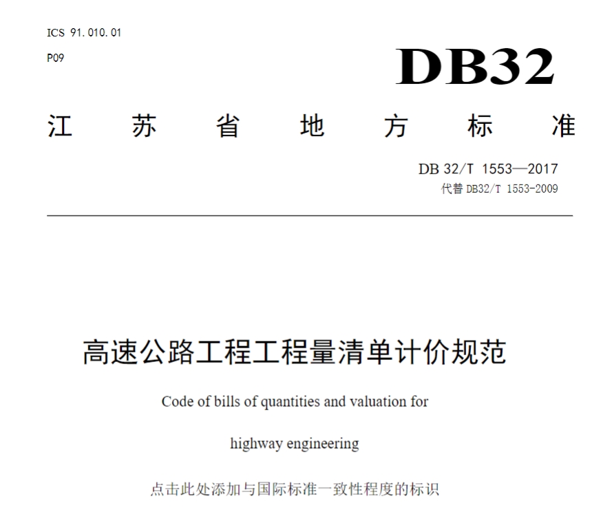 高速公路工程工程量清单计价规范DB32/T1553-2017