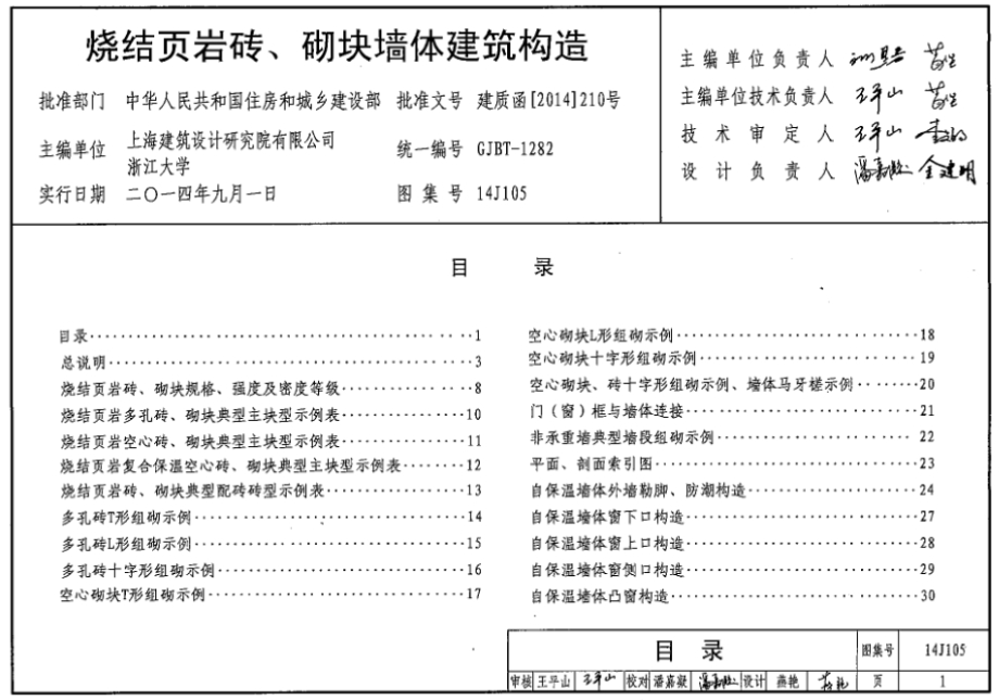 烧结页岩砖、砌块墙体建筑构造(14J105)