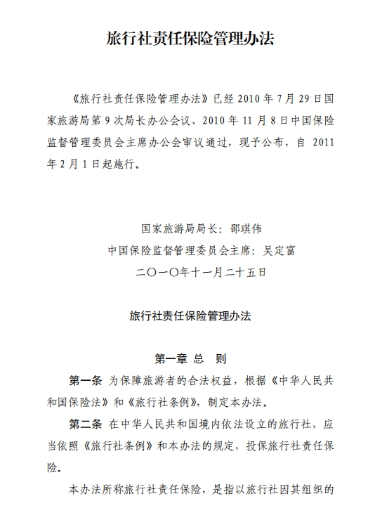 旅行社责任保险管理办法