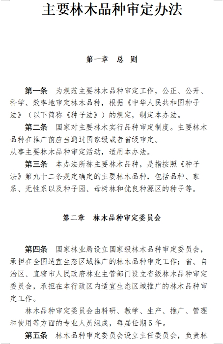 为规范主要林木品种审定工作,公正、公开、科学、效率地审定林木品种,根据《中华人民共和国种子法》(以下简称《种子法》)的规定,制定本办法。