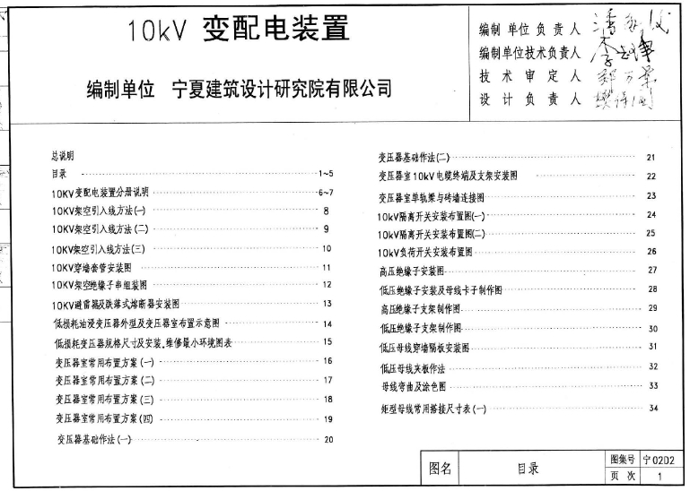 宁02D2 10KV变配电装置图集,适用于单台变压器容量2000kVA及以下民用建筑及一般工业建筑当变压器设在民用建筑物内时,应采用干式变压器,且单台容量宜在1600KVA及以下。