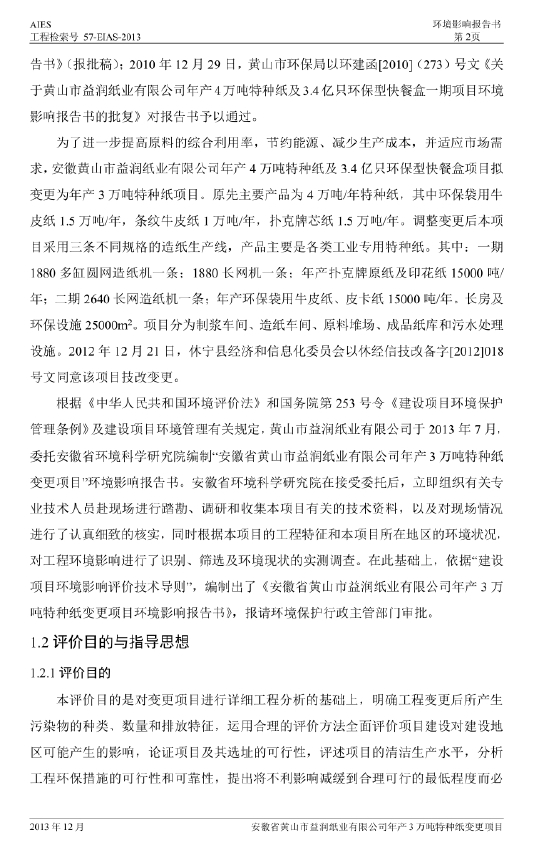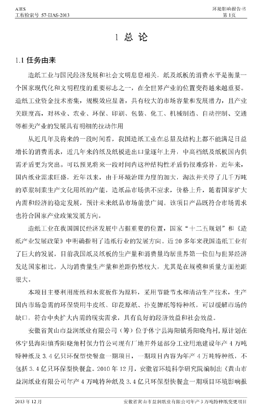 安徽省黄山市某公司年产3万吨特种纸变更项目