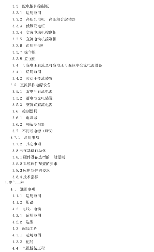 本统一技术规定(四)“电气篇”的目的是提供在进行电气设备的选型和安装、配线设计等工作时应遵守的一般技术事项。