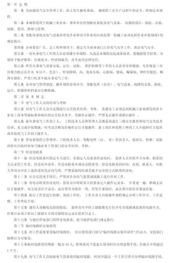 为加强电气安全管理工作,防止发生触电事故,确保职工在生产过程中的安全,特制定本规程。