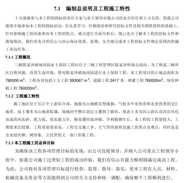 三峡陈家冲碴场西园水土保持工程区位于三峡工程管理区陈家冲料场公园内。为了恢复三峡库区自然风貌,改善生态环境,特对陈家冲碴场西园进行水土保持工程。本工程项目的占地总面积为780000m2,工程内容包括土方工程393067m3、道路工程2417米、喷灌工程760000m2,绿化种植工程 760000m2.