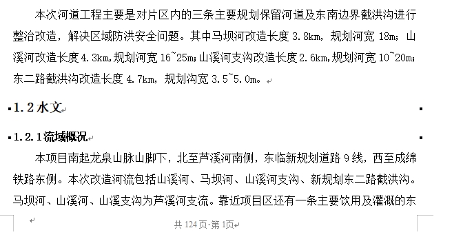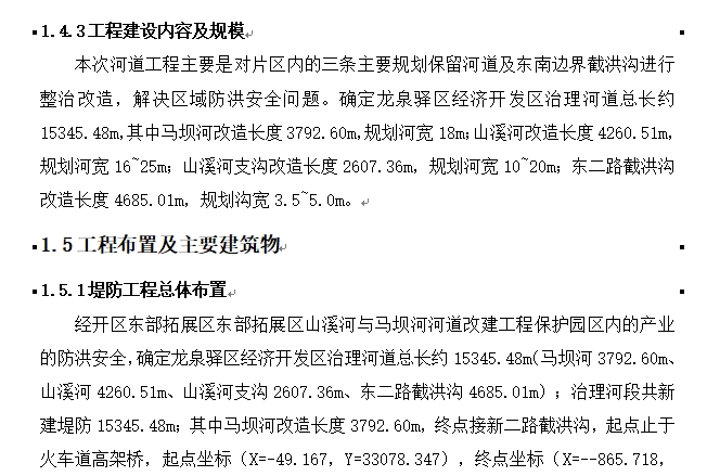 本次河道工程主要是对片区内的三条主要规划保留河道及东南边界截洪沟进行整治改造,解决区域防洪安全问题。确定龙泉驿区经济开发区治理河道总长约15345.48m.