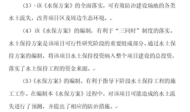 《水保方案》的编制,有利于“三同时”制度的落实。水土保持方案是该项目可行性研究阶段的重要组成部分。通过水土保持方案的编制,将该项目水土保持投资纳入整个项目建设的总投资,落实了水土保持工程的资金来源。有利于指导下阶段水土保持工程的施工工作。在编制本《水保方案》过程中,对该项目可能造成的水土流失进行了预测,并提出了相应的防治措施。