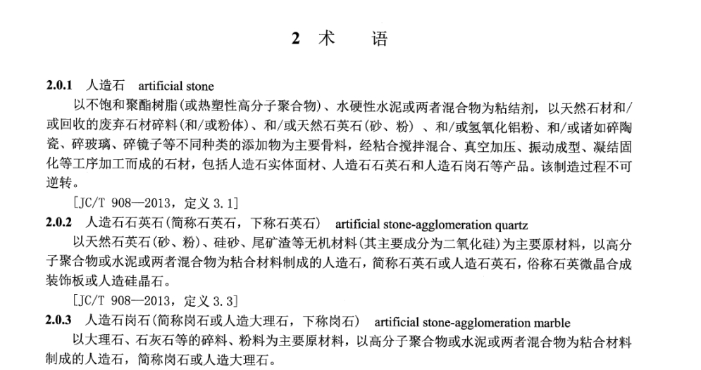 JCT 2300-2014 人造石加工、装饰与施工质量验收规范,为规范人造石,主要为人造石实体面材、人造石石英石和人造石岗石(以下分别简称实体面材、石英石和岗石)等的加工、装饰、装修、安装与施工,保证工程质量,保障人身健康和财产安全,保护环境,维护公共利益,制定本规范。