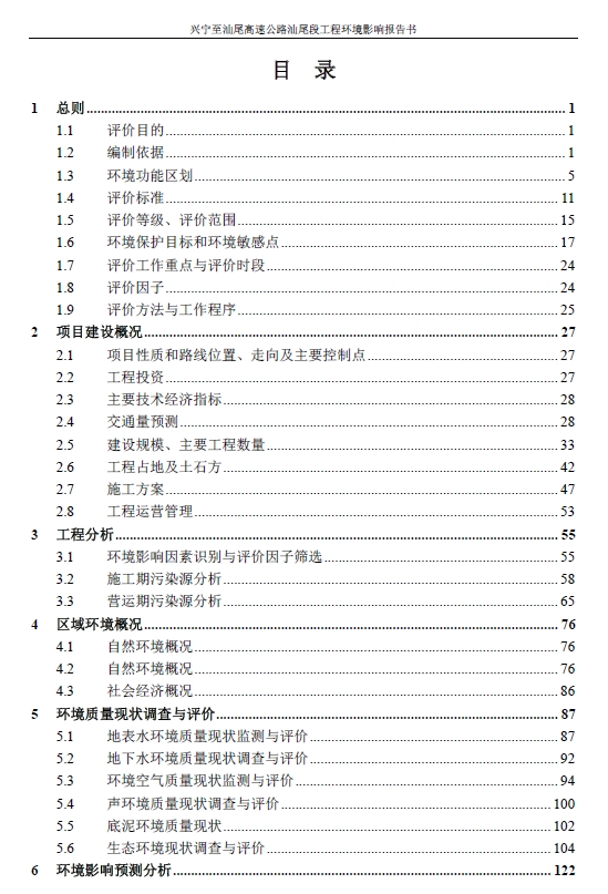 工程在建设期及营运期会对沿线环境产生不同程度的影响,但在严格落实环境影响报告书各项环保措施后,项目对环境的污染可得到有效防治、对公路沿线生态环境影响能够降低到环境可接受的程度。因此,在认真落实国家、广东省和汕尾市相应环保法规政策,并严格执行“三同时”制度的前提下,从环境保护的角度考虑,兴宁至汕尾高速公路汕尾段工程的建设是可行的。