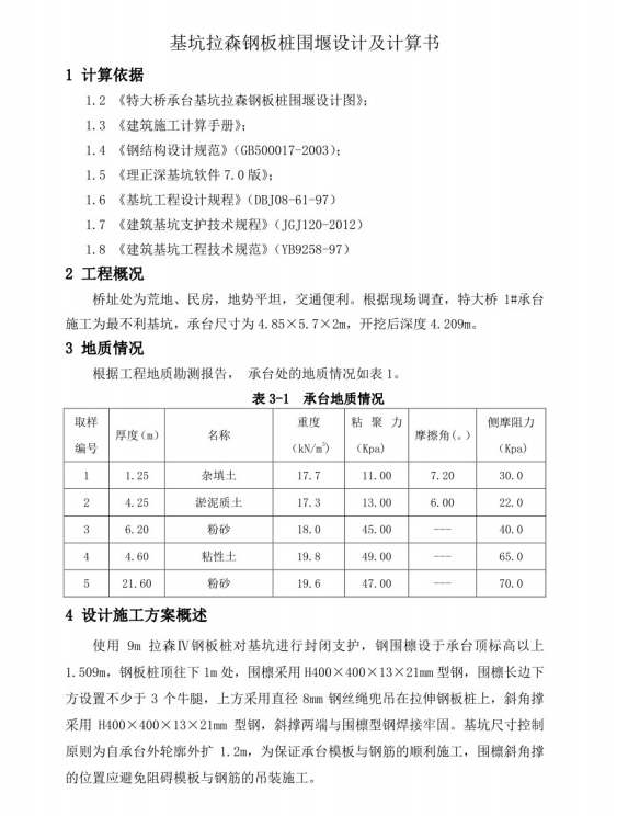 【特大桥】基坑支护(钢板桩)设计和计算书