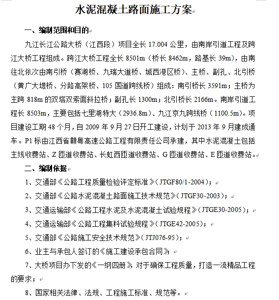 水泥砼路面施工方案,九江长江公路大桥A段采用高级路面沥青混凝土面层,设计年限15年,标准轴载 BZZ-100。路面结构设计采用双圆均布垂直荷载作用下的弹性层状连续体系理论进行计算,以路表面回弹弯沉值为保证路面结构整体刚度的设计指标,以弯拉应力为控制结构疲劳开裂的设计指标。主线一般路段行车道路面由沥青混凝士组成;主线收费广场和匝道收费广场则由水泥混凝土路面组成。