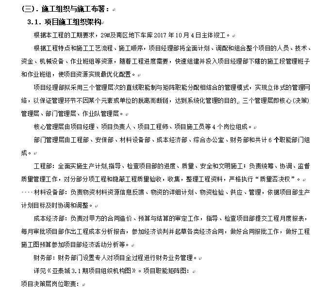 装配式施工组织设计(住宅高层),根据工程特点和施工工艺流程、施工顺序,项目经理部将全面计划、调配和组合整个项目的人员、技术、资金、机械设备、作业班组等资源,随着工程进度需要,快速组建并投入项目经理部下辖的施工段管理班子和作业班组,使项目资源实现最优化配置。