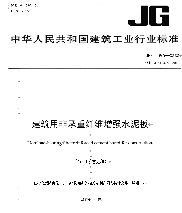 建筑用非承重纤维增强水泥板(修订征求意见稿)