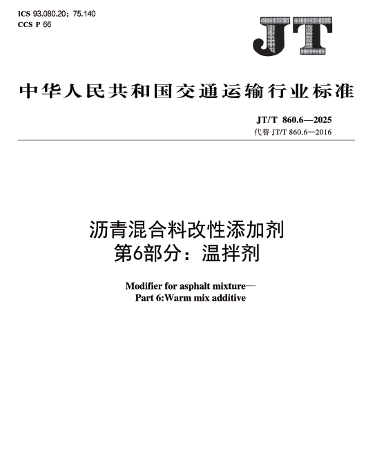 JT/T 860.6-2025 沥青混合料改性添加剂 第6部分:温拌剂