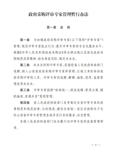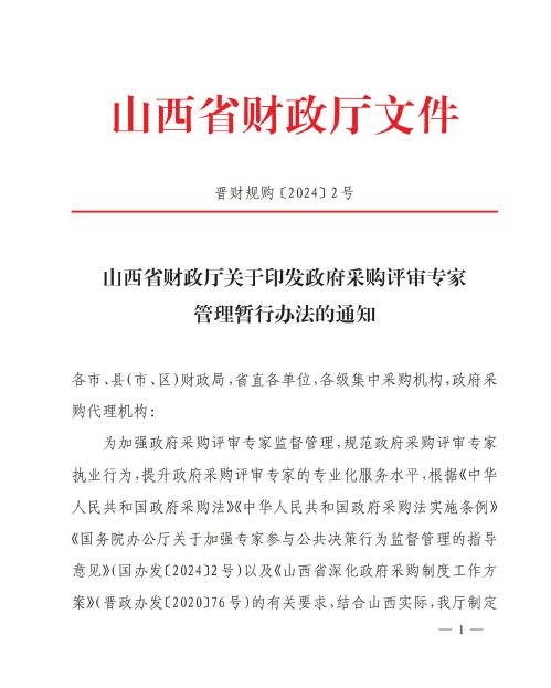 山西省财政厅关于印发政府采购评审专家管理暂行办法的通知