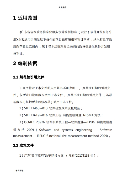 广东省省级政务信息化服务预算编制标准(试行) 软件开发服务分册