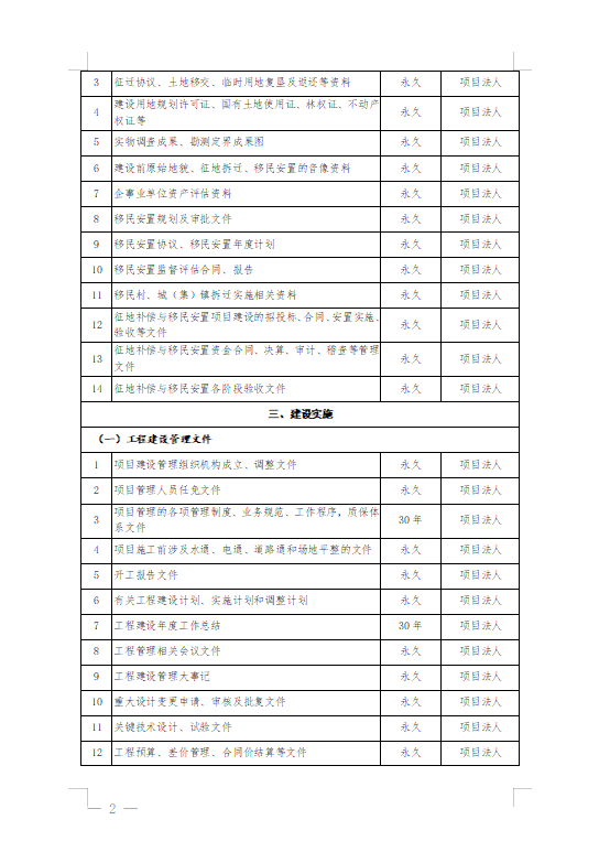 水利工程建设项目文件归档范围和档案保管期限表