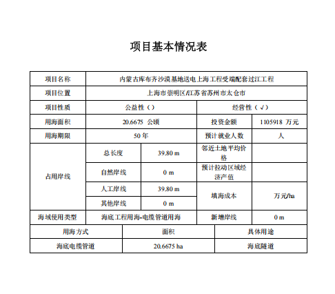 自然资源部:关于内蒙古库布齐沙漠基地送电上海工程受端配套过江工程项目海域使用论证报告的公示
