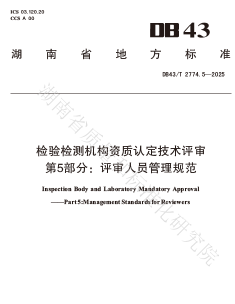 DB43/T 2774.5-2025 检验检测机构资质认定技术评审 第5部分:评审人员管理规范