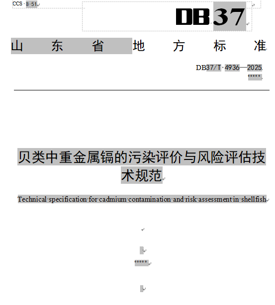 DB37/T 4936-2025 贝类中重金属镉的污染评价与风险评估技术规范