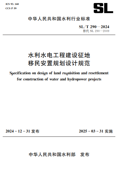 SL/T 290-2024 水利水电工程建设征地移民安置规划设计规范
