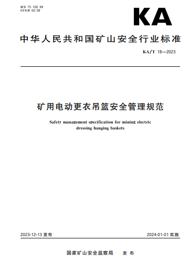 KA/T 18-2023 矿用电动更衣吊篮安全管理规范