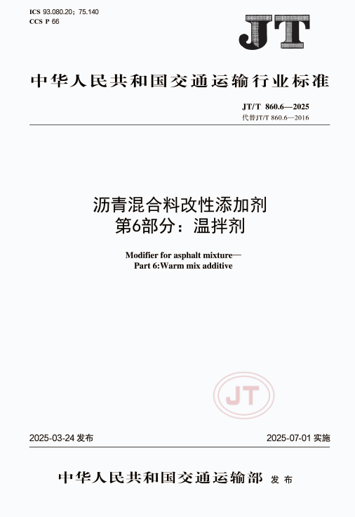 JT/T 860.6-2025 沥青混合料改性添加剂 第6部分:温拌剂