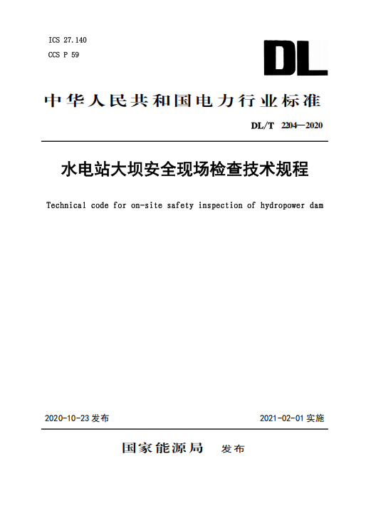 DL/T 2204-2020 水电站大坝安全现场检查技术规程