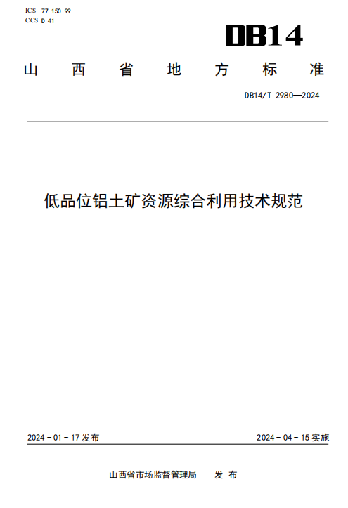 DB14/T 2980-2024 低品位铝土矿资源综合利用技术规范