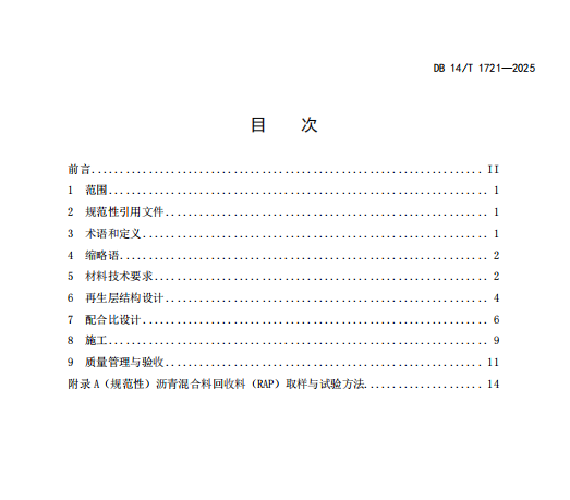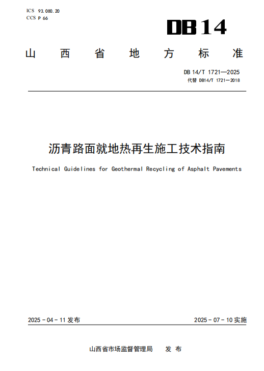 DB14/T 1721-2025 沥青路面就地热再生施工技术指南
