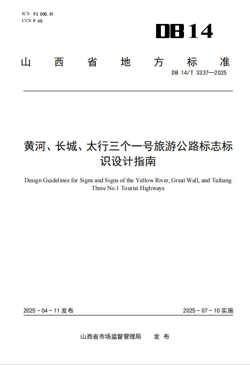 DB14/T 3337-2025 黄河、长城、太行三个一号旅游公路标志标识设计指南