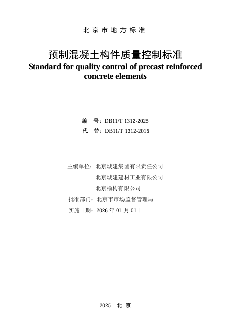 DB11/T 1312-2025 预制混凝土构件质量控制标准