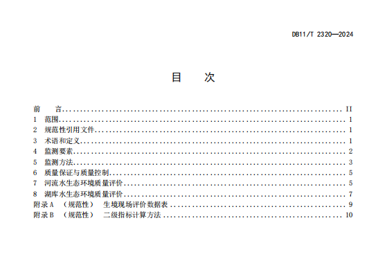 DB11/T 2320-2024 河流和湖库水生态环境质量监测与评价技术规范