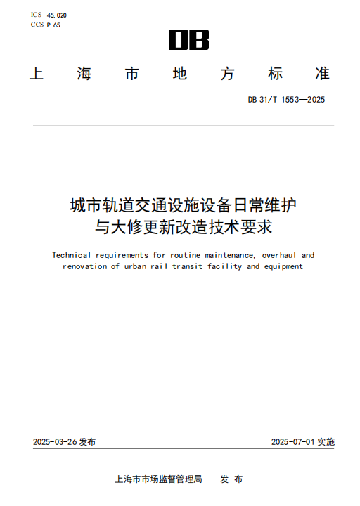 DB31/T 1553-2025 城市轨道交通设施设备日常维护与大修更新改造技术要求
