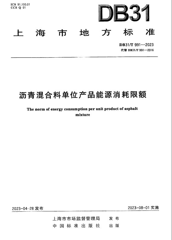 DB31/T 991-2023 沥青混合料单位产品能源消耗限额