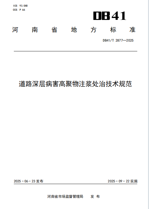 DB41/T 2877-2025 道路深层病害高聚物注浆处治技术规范
