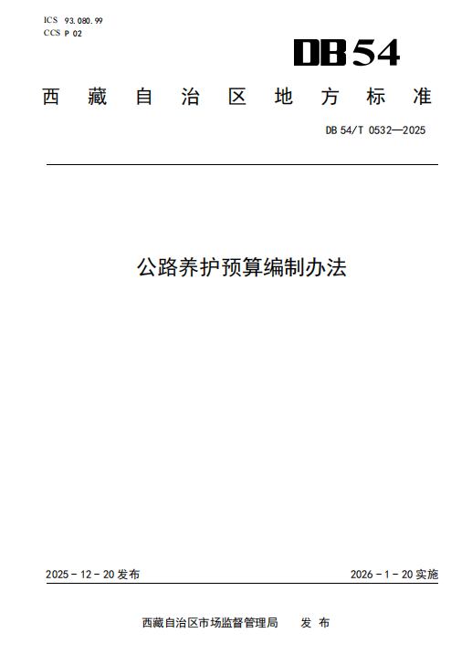 DB54/T 0532-2025 西藏自治区国省公路养护费用编制办法