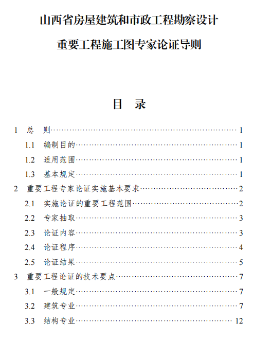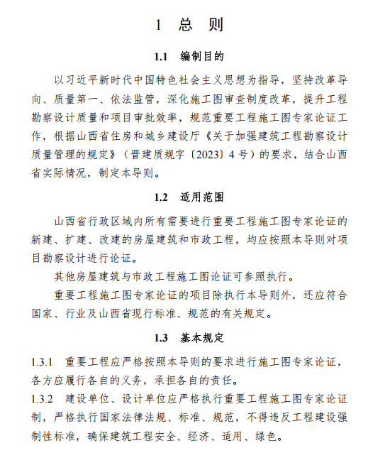 山西省行政区域内所有需要进行重要工程施工图专家论证的新建、扩建、改建的房屋建筑和市政工程,均应按照本导则对项目勘察设计进行论证。其他房屋建筑与市政工程施工图论证可参照执行。