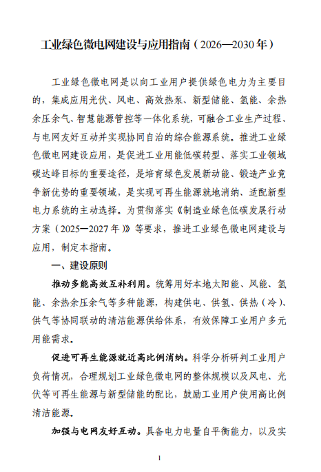 《工业绿色微电网建设与应用指南(2026—2030年)》