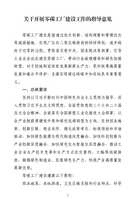 《关于开展零碳工厂建设工作的指导意见》