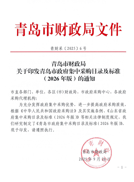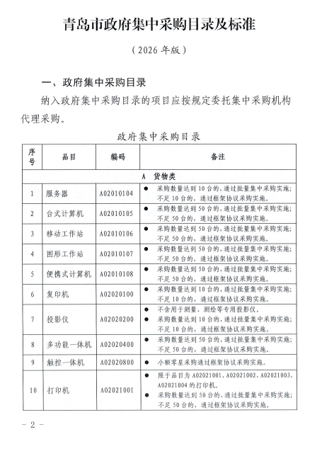 青岛市财政局关于印发青岛市政府集中采购目录及标准(2026年版)