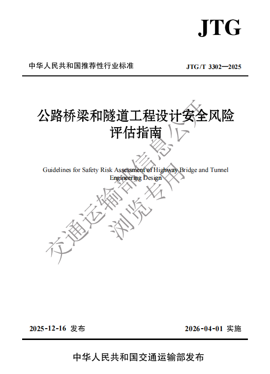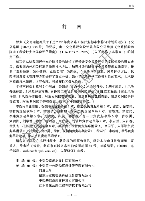 《公路桥梁和隧道工程设计安全风险评估指南》