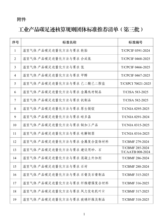 工业产品碳足迹核算规则团体标准推荐清单(第三批)