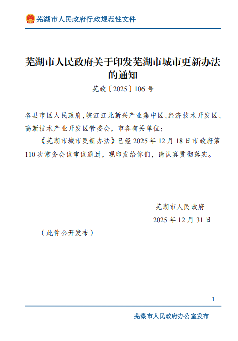 芜湖市人民政府关于印发芜湖市城市更新办法的通知