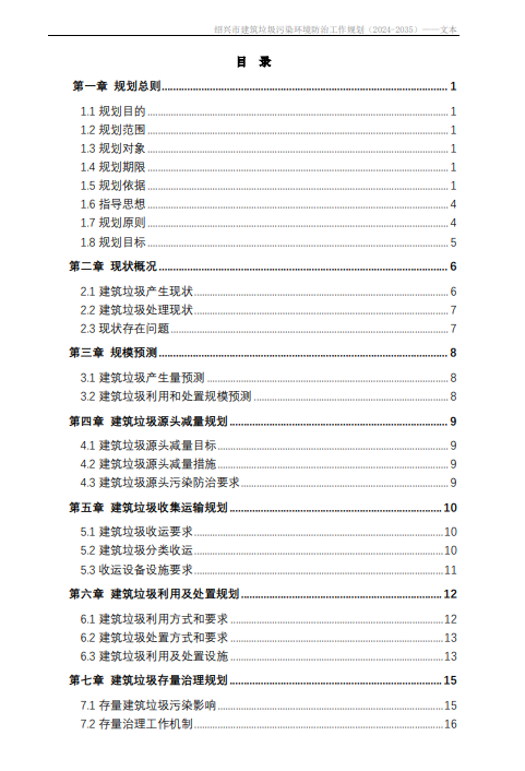 绍兴市建筑垃圾污染环境防治工作规划(2024-2035)
