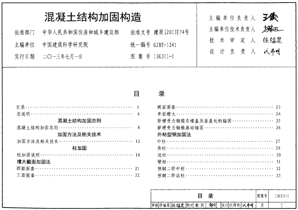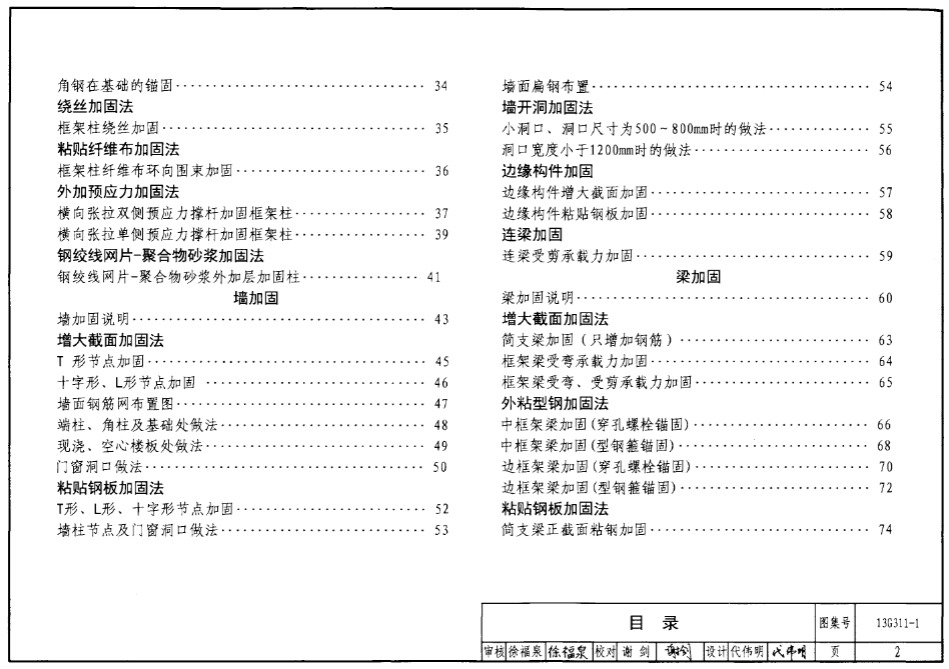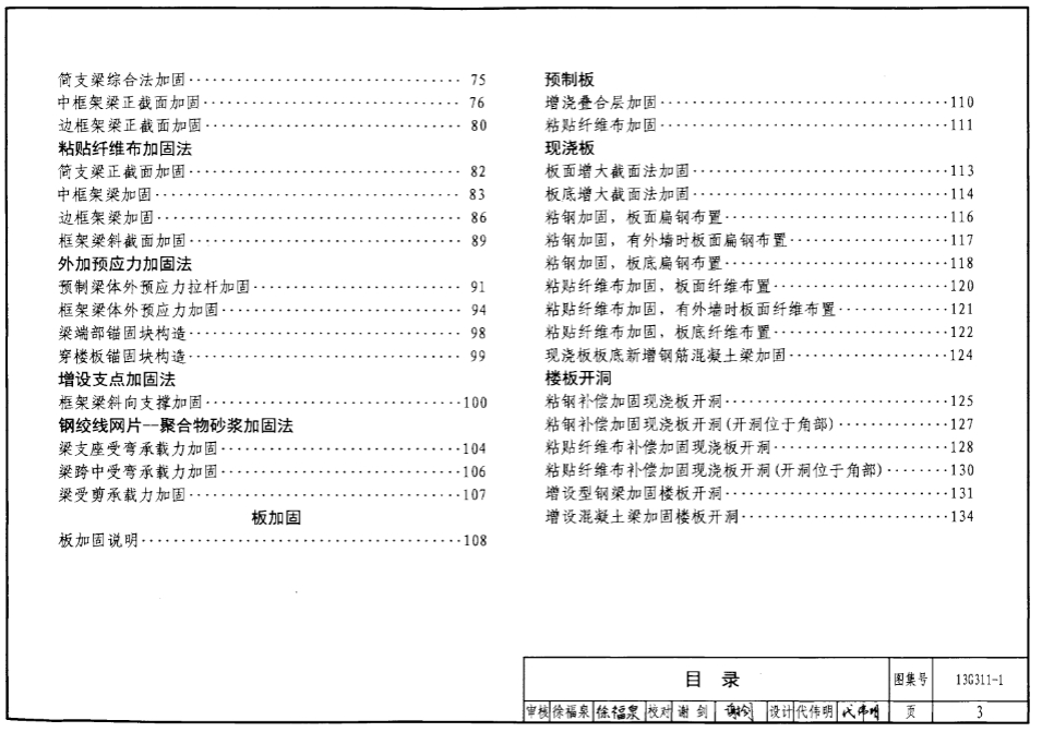 本图集包括混凝土结构加固总则、加固方法及相关技术柱加固、墙加固、梁加固、板加固、楼梯加固、基础加固节点加固、托换技术、建筑结构体系加固和构件延展与接长。
