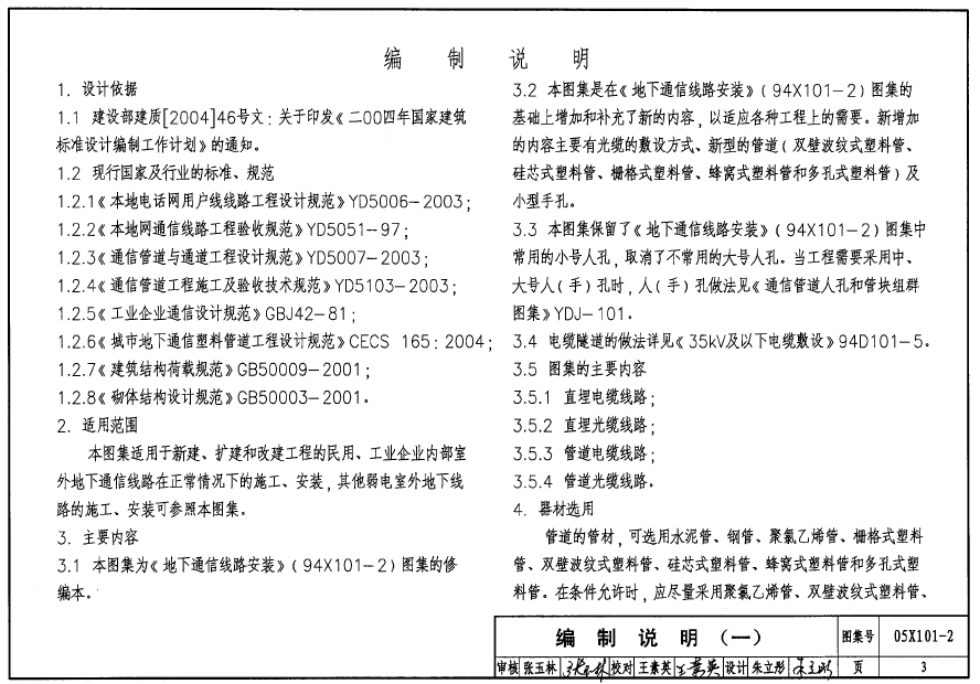 本图集适用于新建、扩建和改建工程的民用、工业企业内部室外地下通信线路在正常情况下的施工、安装,其他弱电室外地下线路的施工、安装可参照本图集